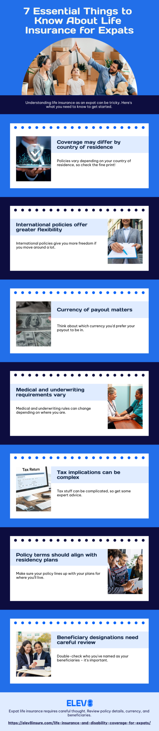Here’s an infographic outlining 7 essential things to know about life insurance for expatriates.